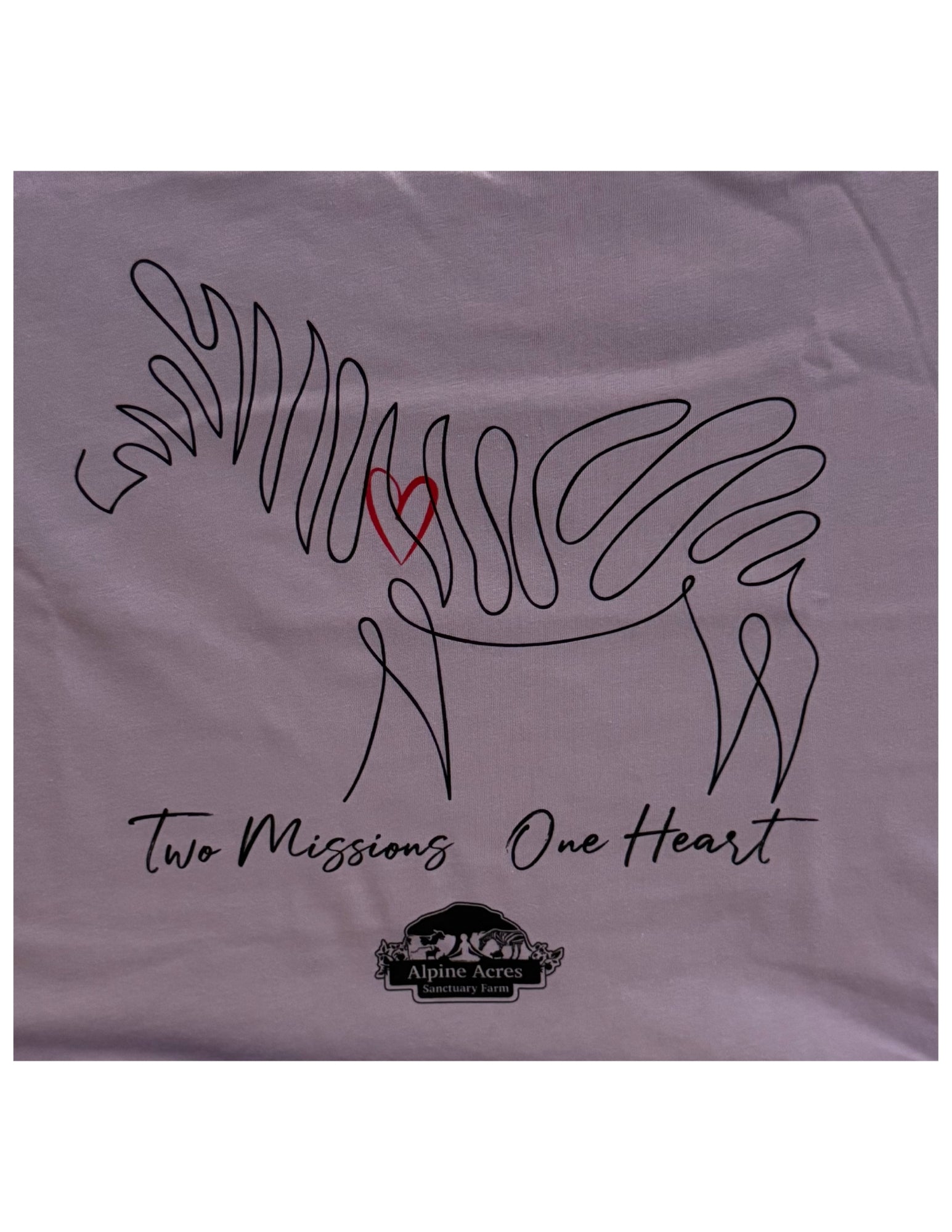 Lavender Adult Unisex Short Sleeve T-Shirt: "Two Missions One Heart" Zebra